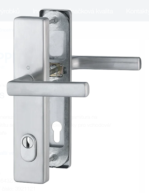HOPPE – nerezová bezpečnostní dveřní garnitura na dlouhém štítu se zakrytím cylindrické vložky pro vchodové/bytové dveře.