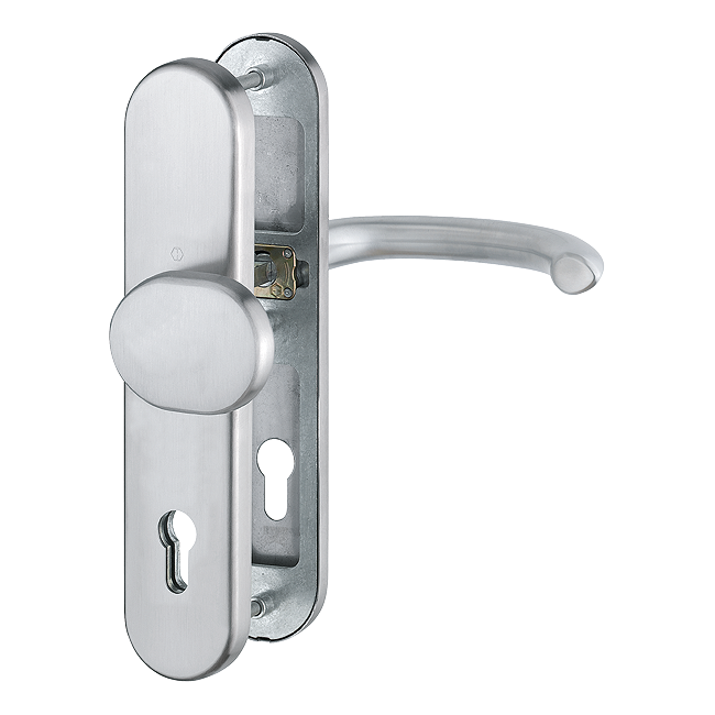 HOPPE – nerezová bezpečnostní garnitura klika/knoflík pro vchodové/bytové dveře: