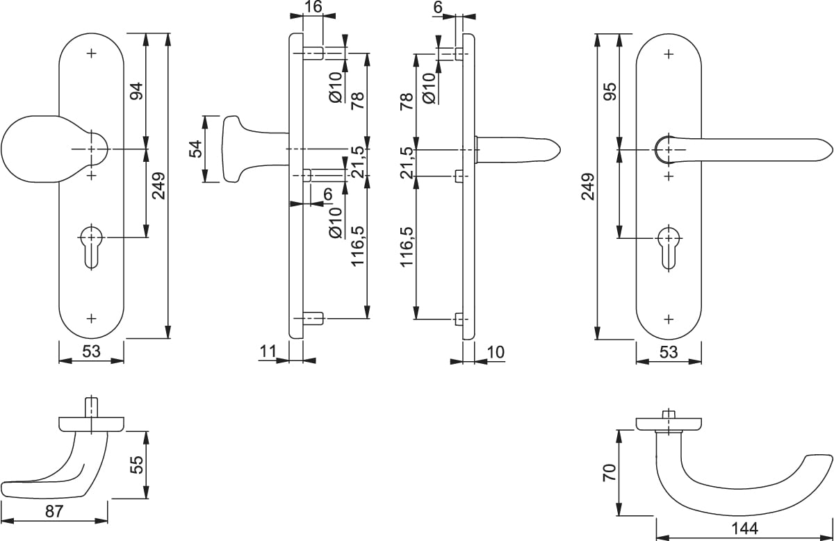 HOPPE – nerezová bezpečnostní garnitura klika/knoflík pro vchodové/bytové dveře: