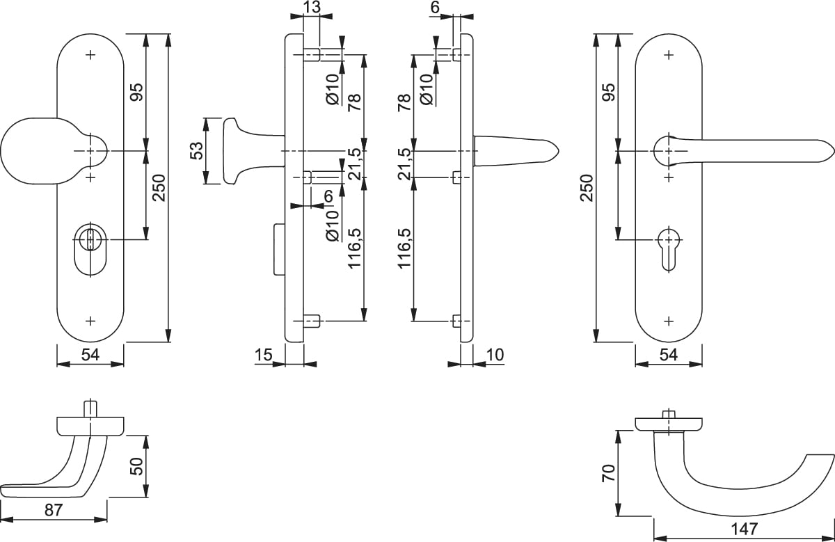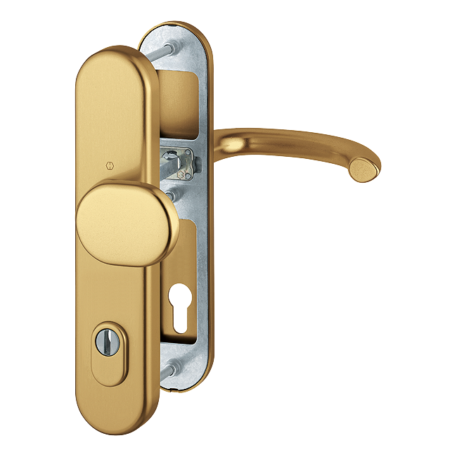 HOPPE – hliníková bezpečnostní garnitura klika/knoflík se zakrytím cylindrické vložky pro vchodové/bytové dveře: