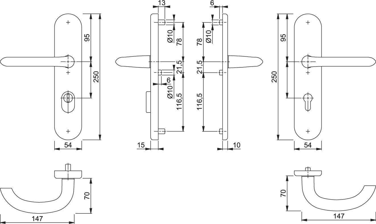 HOPPE – hliníková bezpečnostní dveřní garnitura na dlouhém štítu se zakrytím cylindrické vložky pro vchodové/bytové dveře: