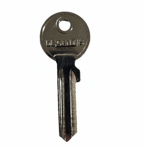Kvalitní kovový klíč s kulatou hlavou a praktickým otvorem pro kroužek. Vhodný jako náhradní nebo přídavný klíč ke stávajícímu zámku typu DECENTIS. Snadno se drží, ideální pro každodenní použití.
