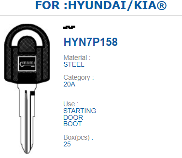 Klíč HYN7P/HY1P/HUN1P/HYN1P