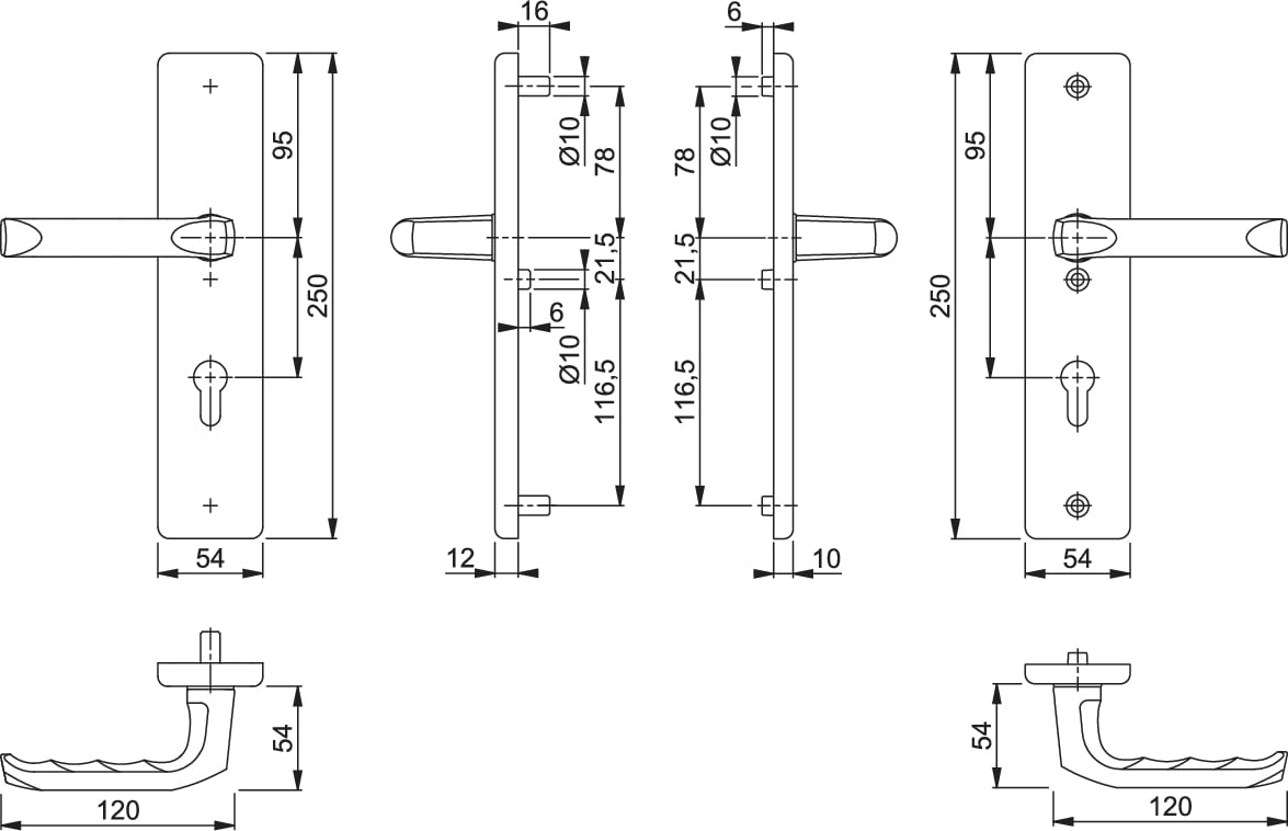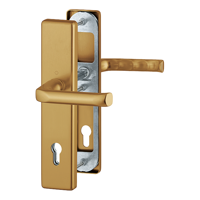 HOPPE – hliníková bezpečnostní dveřní garnitura na dlouhém štítu pro vchodové/bytové dveře:
