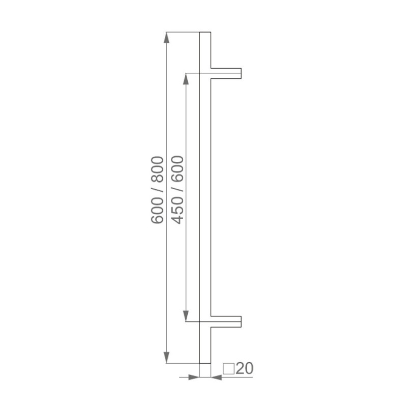 Toto dveřní madlo je dostupné v délce 600 (rozteč 450) nebo 800 (rozteč 600) mm, v páru pro oboustranné použití, nebo jako kus pro jednostranné použití. Pár není možné použít jako dvě jednostranná madla.
