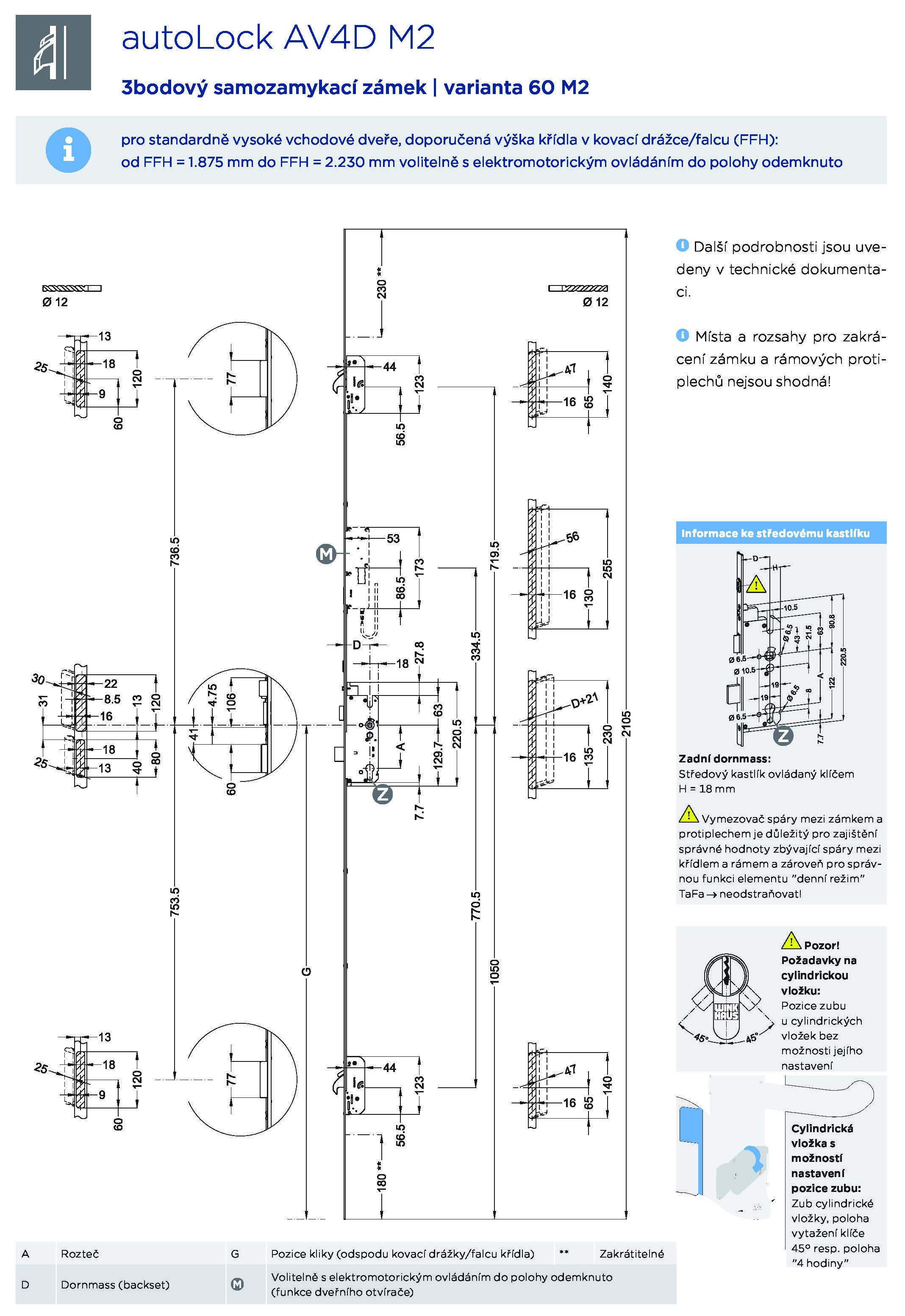 - vzdálenost mezi osou kliky a osou cylindrické vložky 92 mm (parametry uvedené v rohu kazety hlavního zámku jsou viditelné až po demontáži celé rozvory).