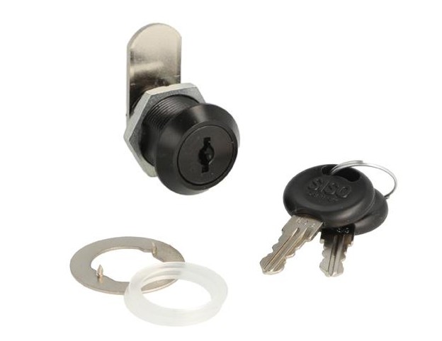 Obsah balení: zámek, převlečná matice, 2 ks klíče, jazýček A01, podložka, 2 ks nylonová podložka