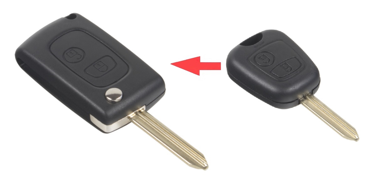 • 2-tlačítkové pouzdro pro vozy Citroen a Peugeot s hrotem SX9 bez elektroniky a čipu imobilizéru.