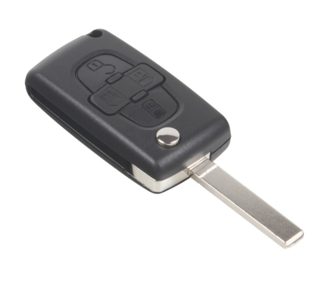 4-tlačítkové pouzdro pro vozy Citroen a Peugeot s hrotem VA2 bez elektroniky a čipu imobilizéru.