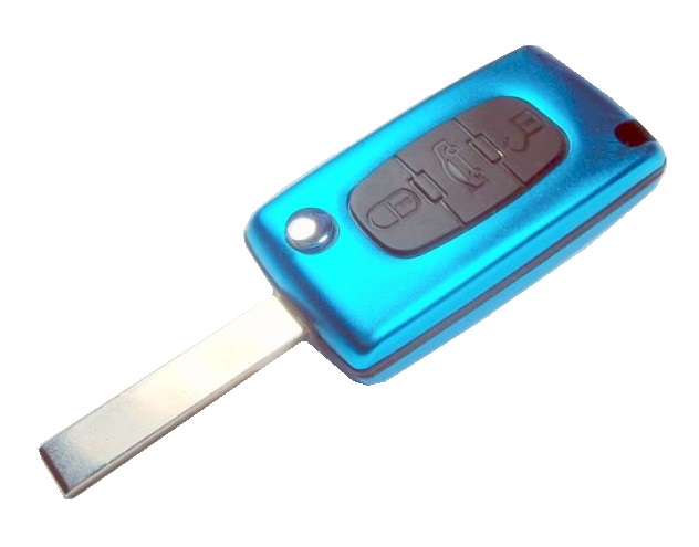 3-tlačítkové modré pouzdro pro vozy Citroen a Peugeot s hrotem HU83 bez elektroniky a čipu imobilizéru.
