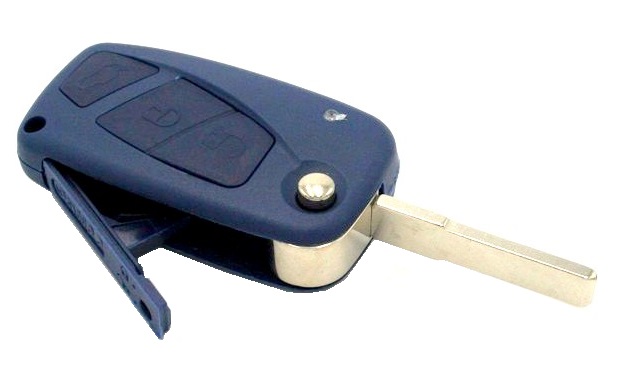 3-tlačítkové modré pouzdro pro vozy Fiat s hrotem SIP22 bez elektroniky a čipu imobilizéru.