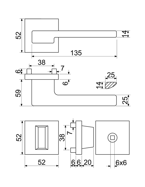 • V provedení WC, balení obsahuje čtyřhran o velikosti 6 x 6 mm a redukci 6/8 mm.