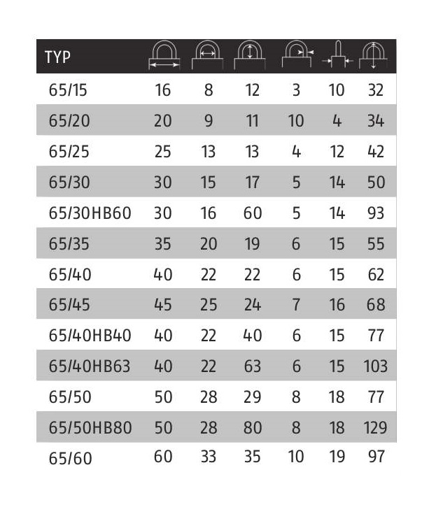 • Mosazný visací zámek s vysokou odolností proti vytržení oka.