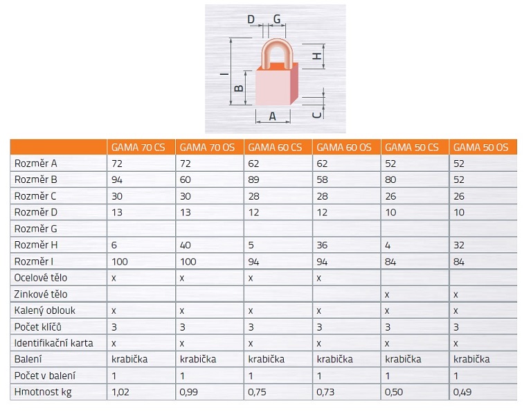 • Zinkový visací zámek s krytým obloukem (CS - cover shackle) pro vyšší bezpečnost.