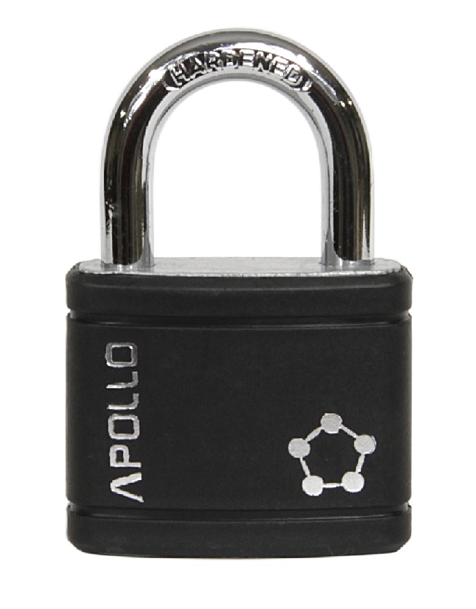 • Ocelový visací zámek s chromovaným tělesem v plastovém krytu.