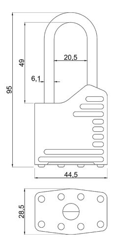 • Standardní nebo prodloužený (PL) třmen zámku HARDENED, jištěný ve dvou bodech.
