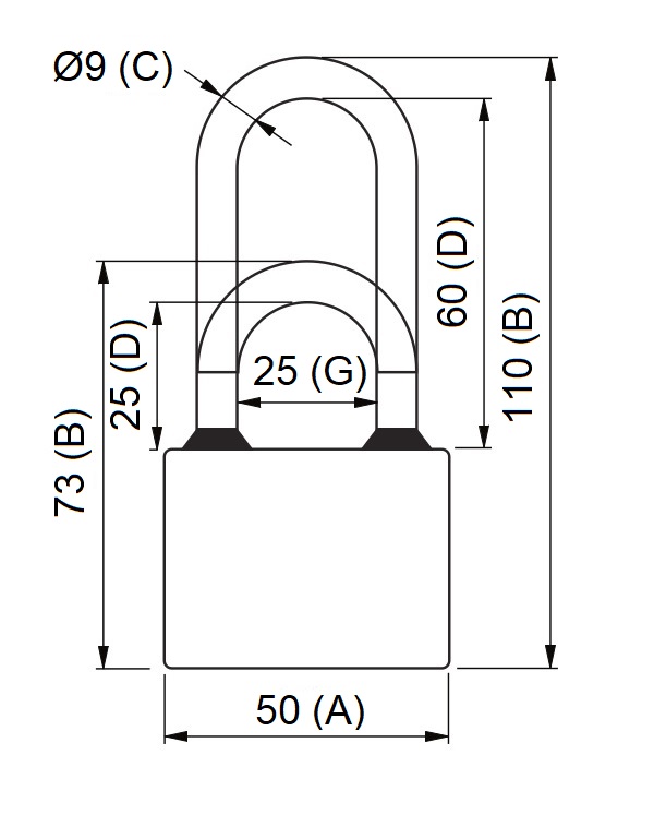 • Uzamykaní (bez klíče) se provádí zatlačením třmenu HARDENED (jištěného ve dvou bodech) do těla zámku.