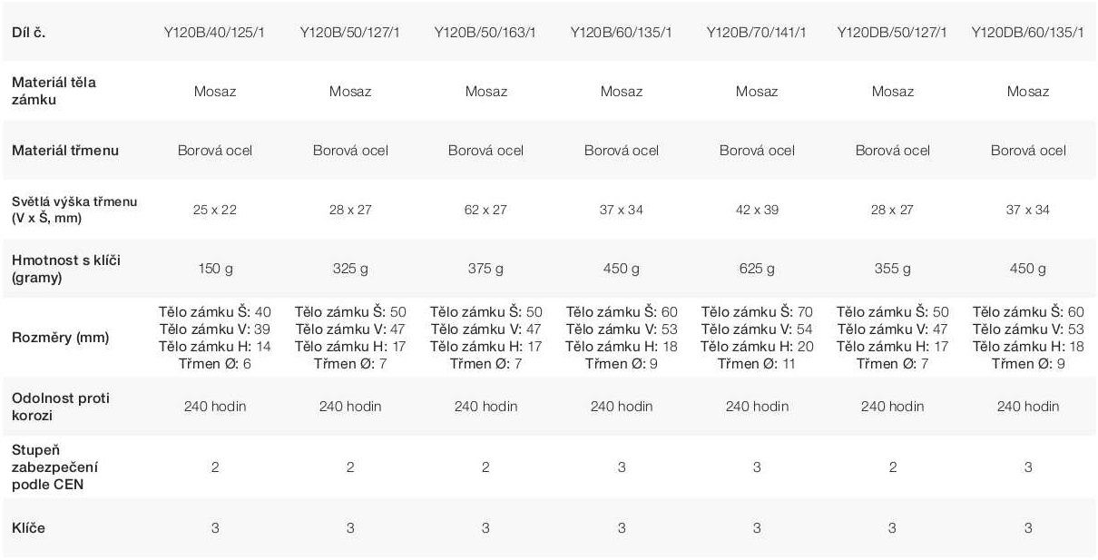 • Mosazný visací zámek s třmenem BORON z boronové oceli odolný proti povětrnostním vlivům.