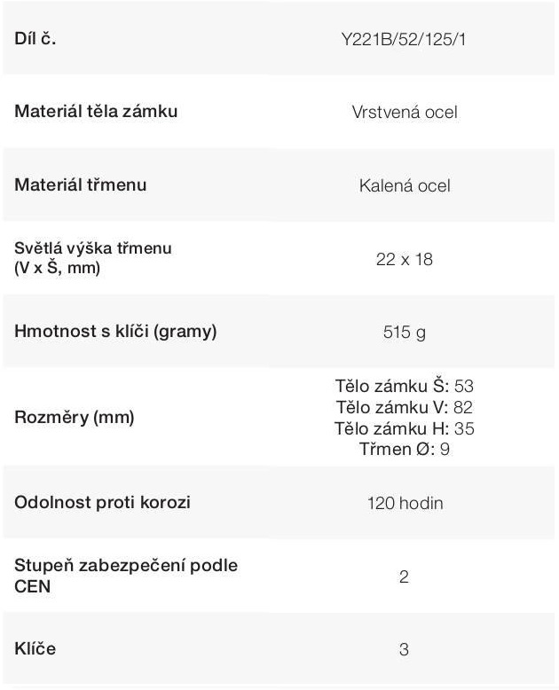 • Ocelový visací zámek vhodný pro venkovní použití.