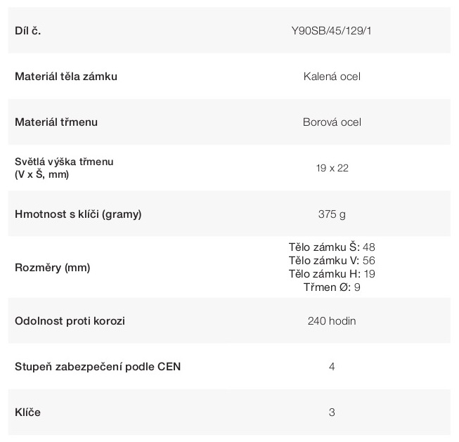 • Zámek byl testován dle normy EN 12320:2012 (4. stupeň zabezpečení).