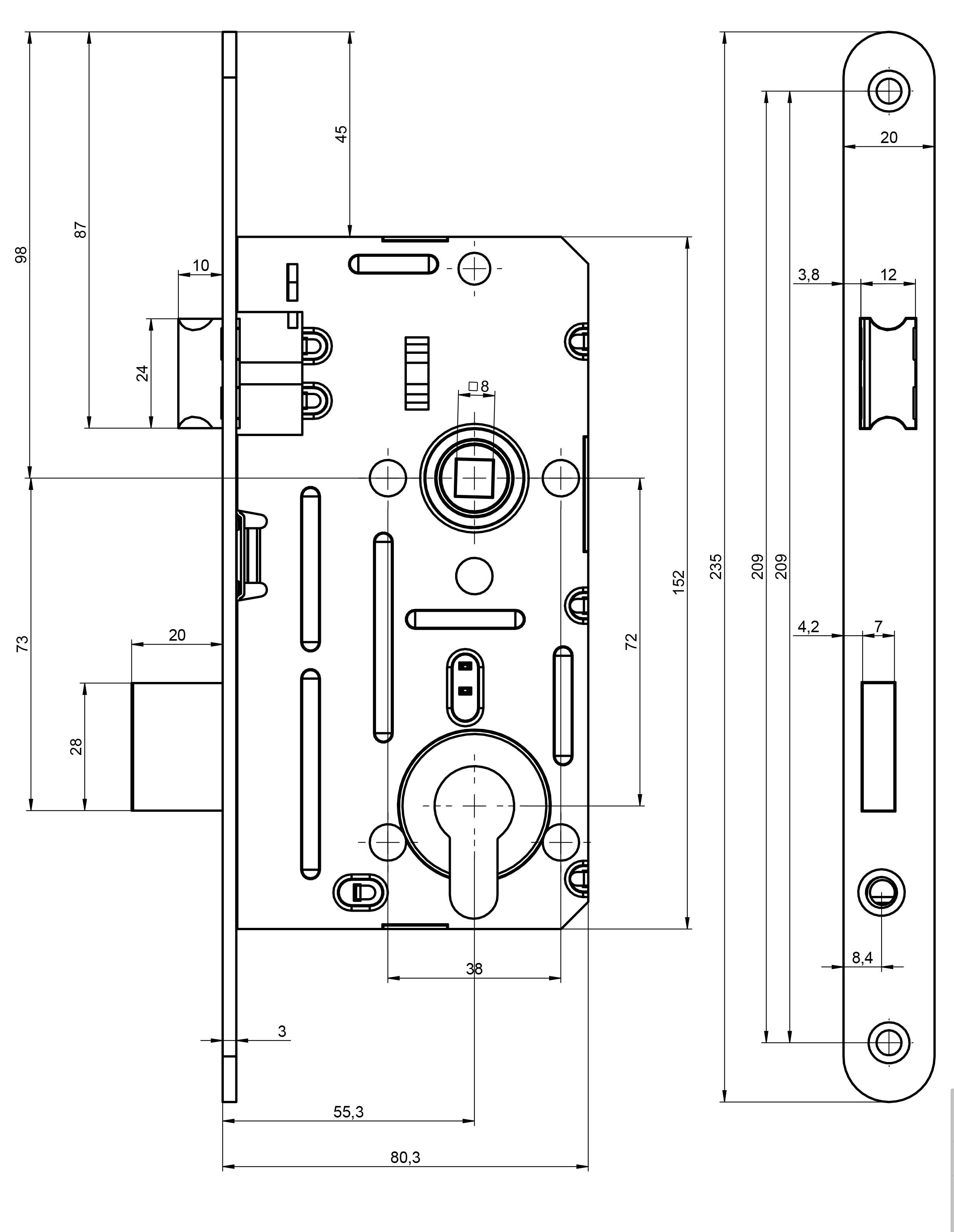 Mechanický zadlabací zámek ovládání cylindrickou vložkou