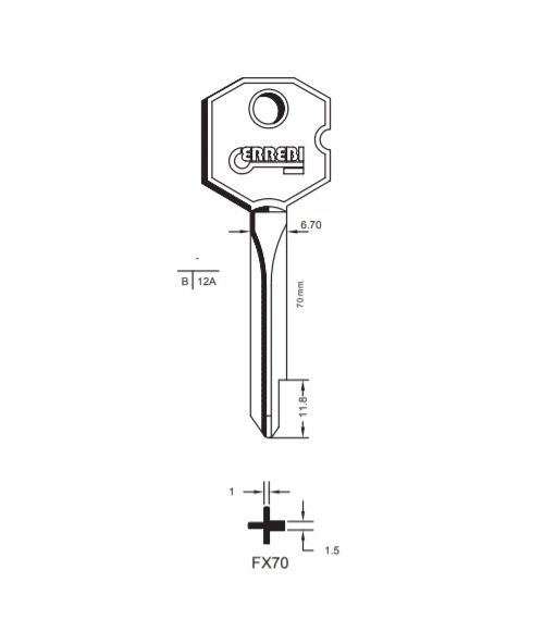 Klíč Errebi FX70 / Silca XBW1 / JMA BUR-1X / CEA BW1C