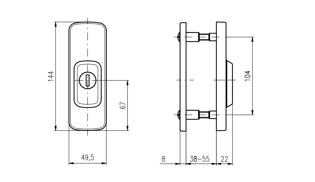 • Tloušťka dveří: 38-55 mm.