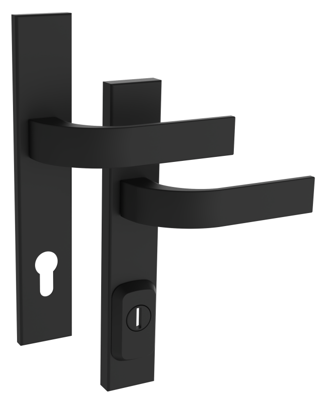 Kování je určeno na vstupní dveře otevírané dovnitř i ven, tloušťka dveří 38 - 50 mm, dále je možné dokoupit spojovací materiál a namontavat tak na dveře až do 100mm tloušťky.