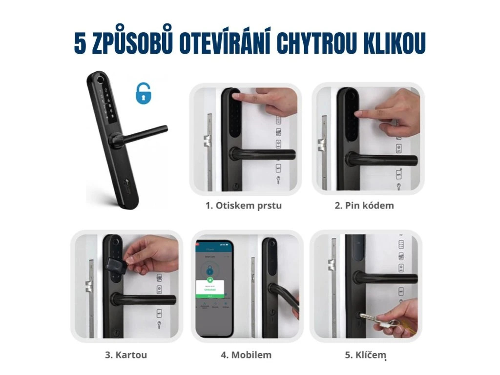 ✔ 5 snadných způsobů odemykání: mobilem, PINem, otiskem prstu, čipem nebo klasickým klíčem