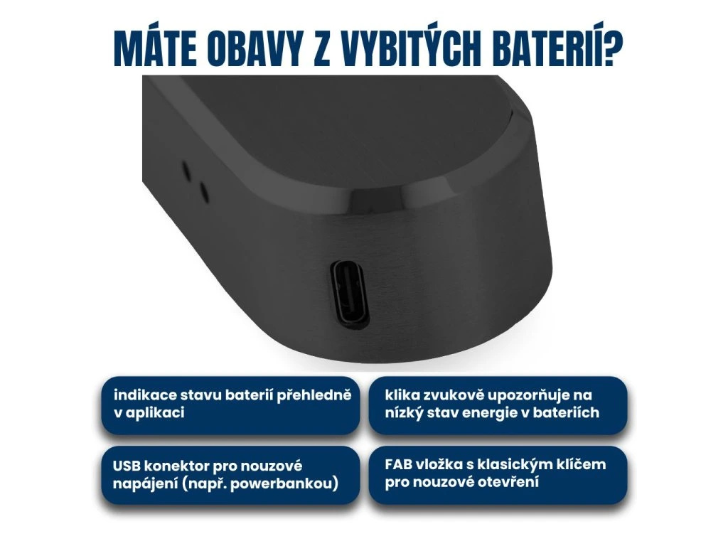 ✔ Životnost baterií: přibližně 10 měsíců (v případě odemykání 20x denně)