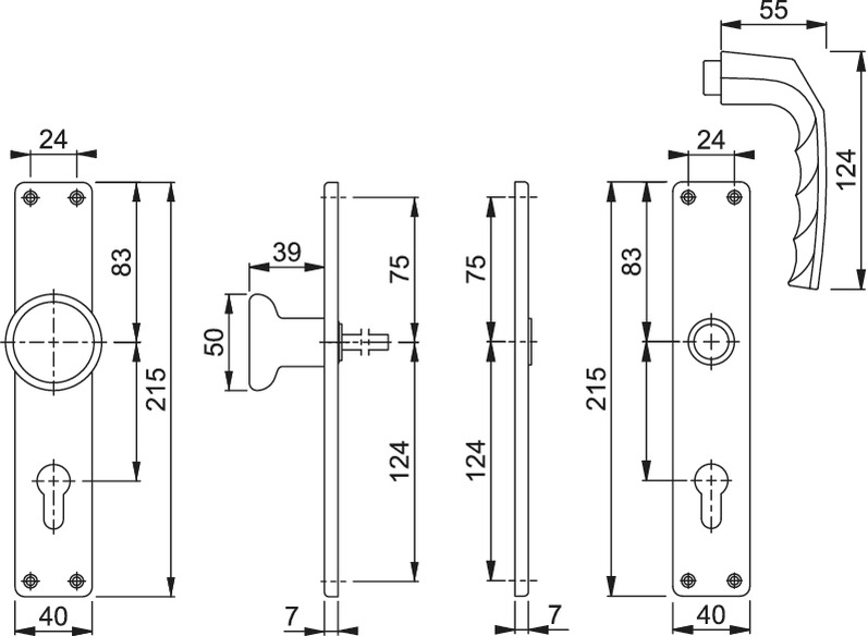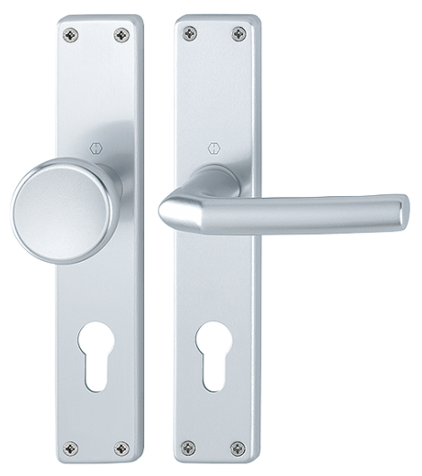 HOPPE - hliníková garnitura klika/knoflík na dlouhém štítu pro bytové dveře.
