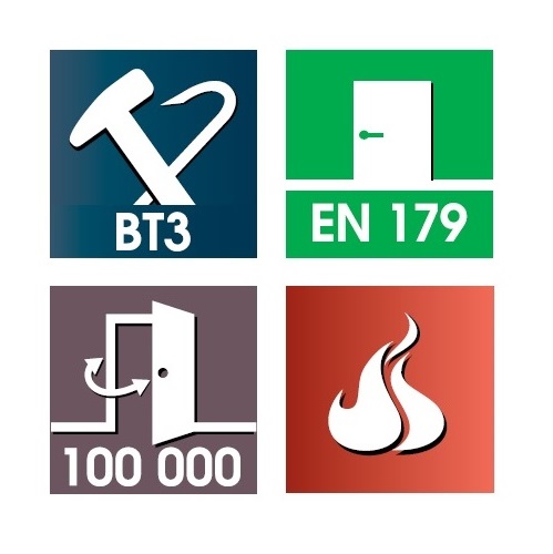 • Vhodný pro únikové panikové dveře dle normy EN179.