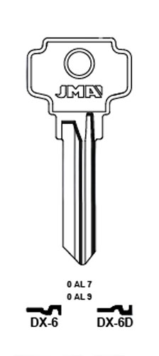 Kompatibilní s cylindrickými zámky DEXTER®. Vyrobeno z kvalitního materiálu pro přesné kopírování originálního klíče. Označení DX-6D, vhodné pro profesionální i domácí použití.