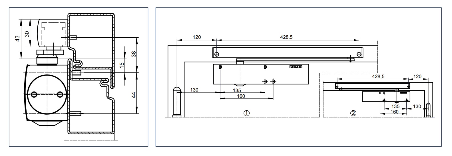 • Pro montáž se zavíračem GEZE TS 3000V.