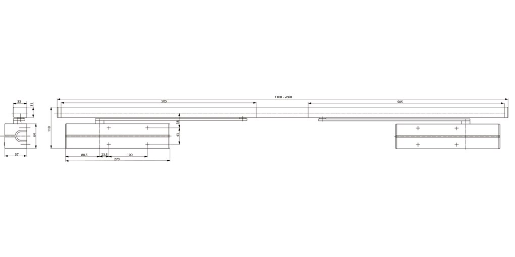 • Pro dvoukřídlé dveře do šířky (jednoho křídla) 1400mm a váhy 120kg.
