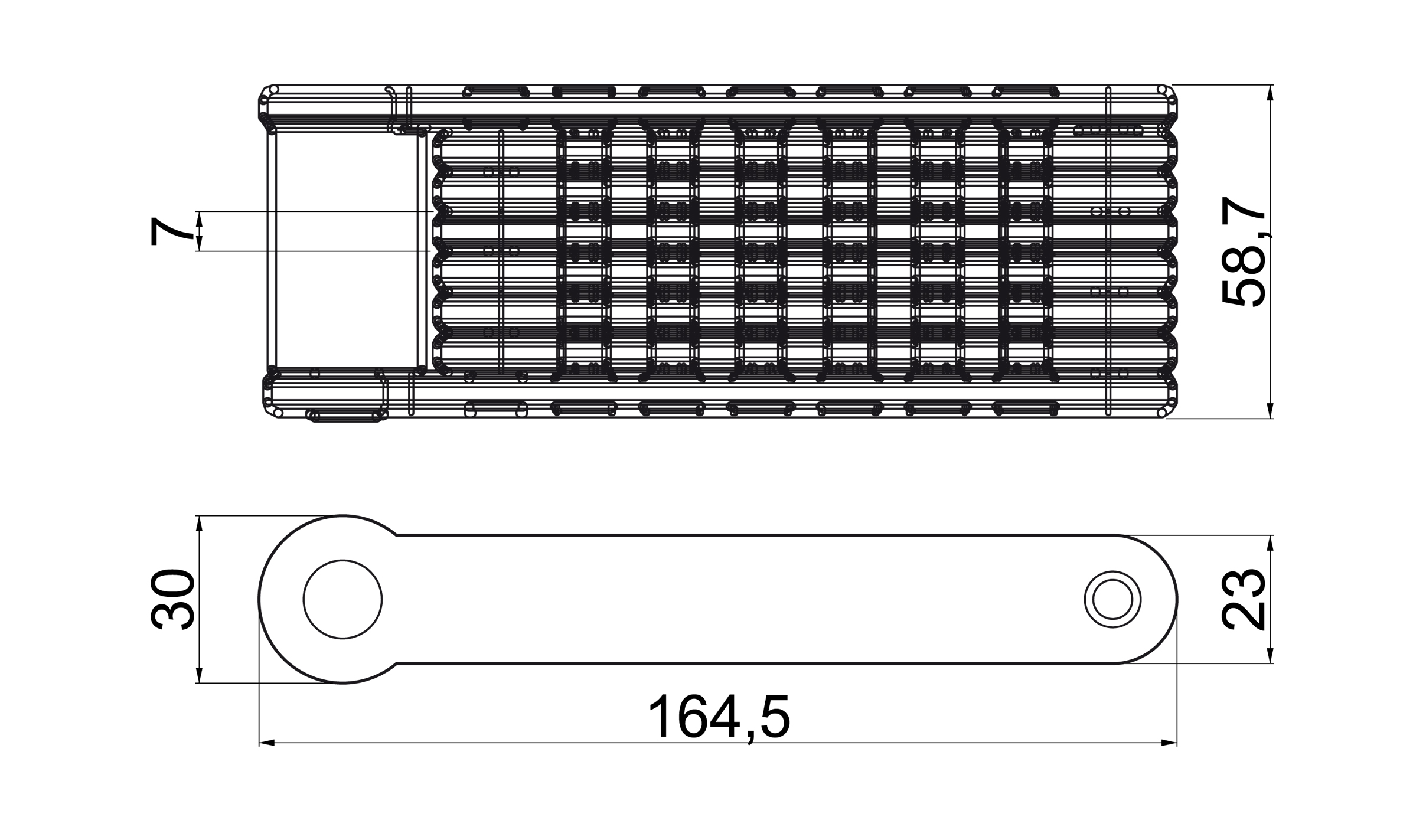o síle lamel 7 mm (3,2 mm ocelové pláty a 3,8 mm plastová pouzdra).