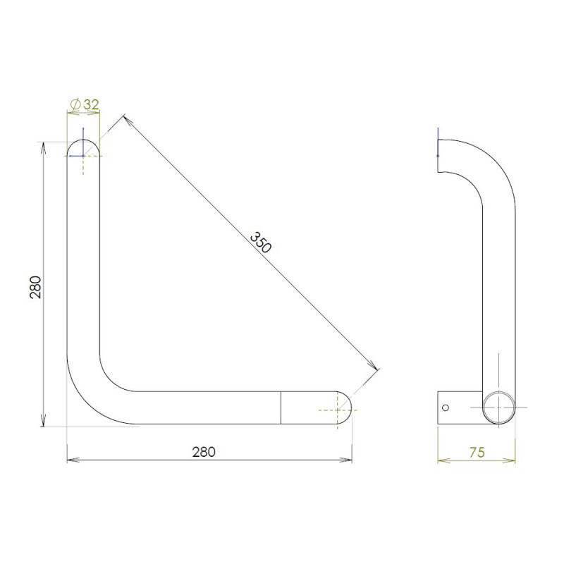 Toto dveřní madlo je dostupné v páru pro oboustranné použití, nebo jako kus pro jednostranné použití. Celková délka madla: 382 mm, rozteč 350 mm. Pár není možné použít jako dvě jednostranná madla.