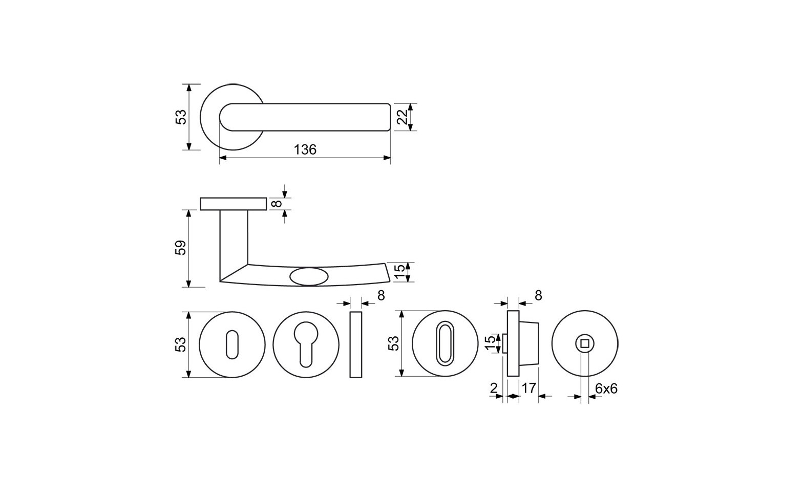 • Kulaté rozetové kování z nerezového materiálu dodáváno v páru.