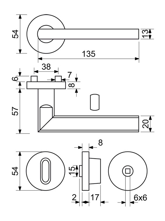 Provedení WC obsahuje čtyřhran o velikosti 6 x 6 mm a redukci 6/8 mm