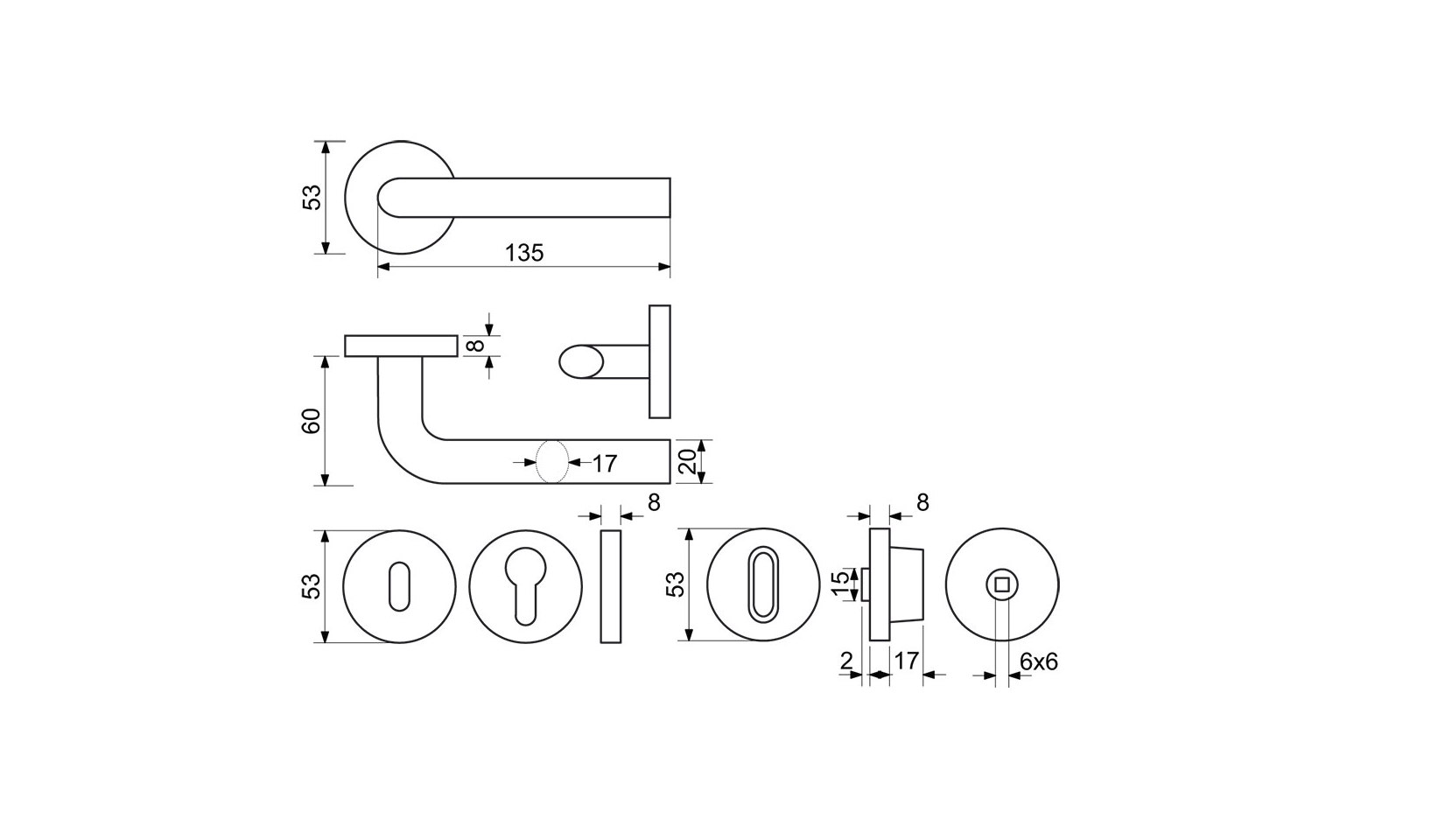 • Kulaté rozetové kování z nerezového materiálu dodáváno v páru.
