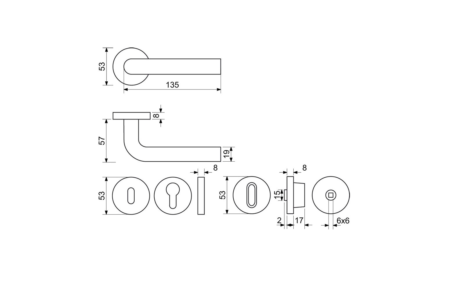 • Kulaté rozetové kování z nerezového materiálu dodáváno v páru.