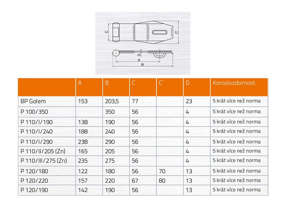 • Petlice z ocelového plechu tloušťky 13 mm.