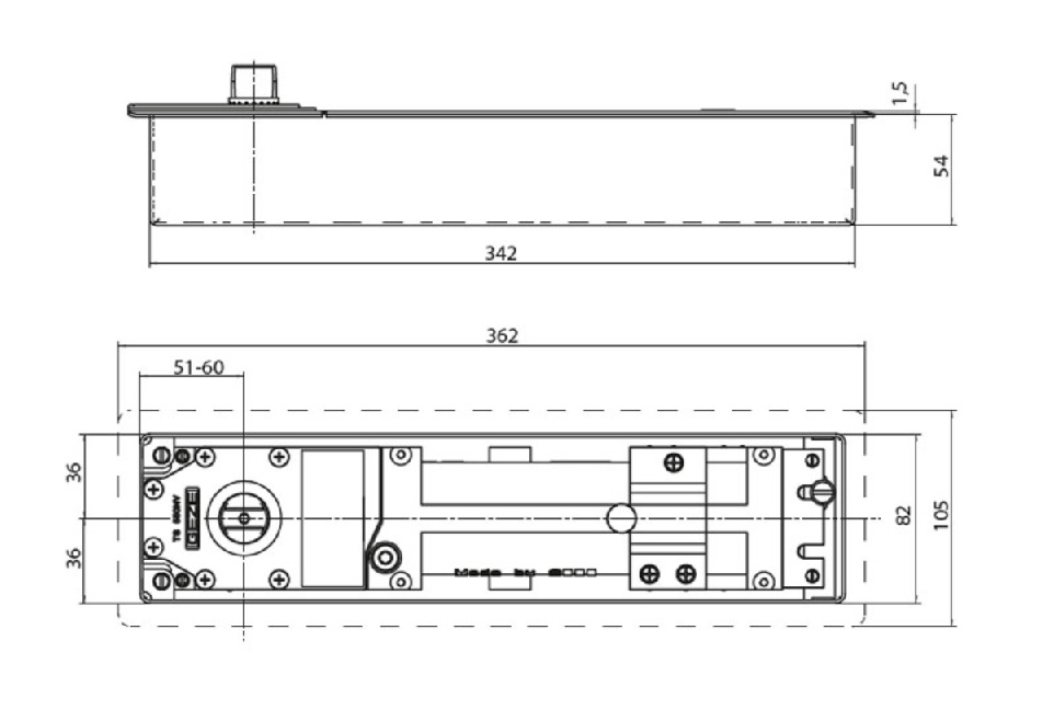 • Podlahový zavírač dveří pro jednokřídlé protipožární dveře do šířky křídla 1400 mm a hmotnosti 300 kg.