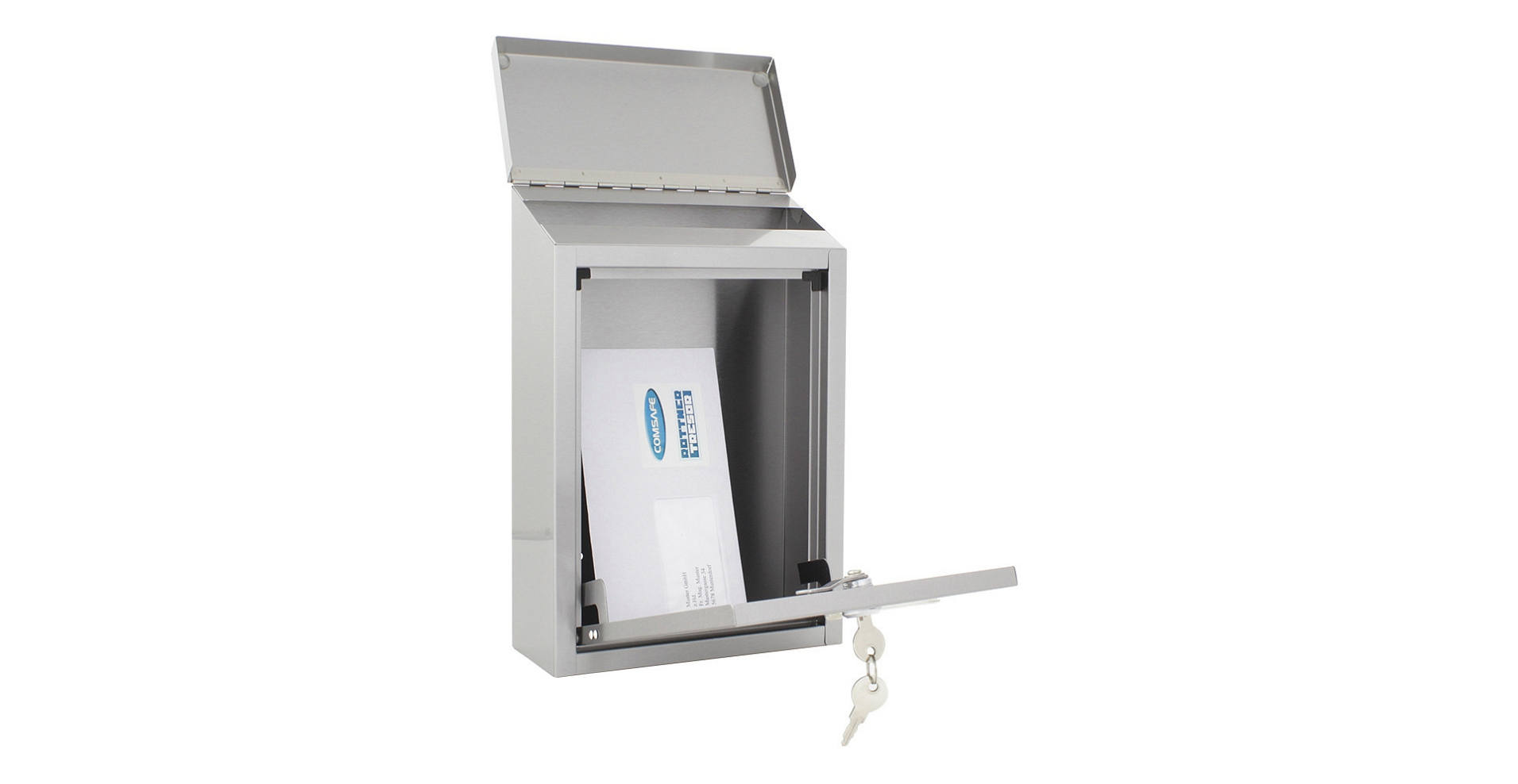 • Nerezová poštovní schránka vhodná do interiéru i exteriéru.