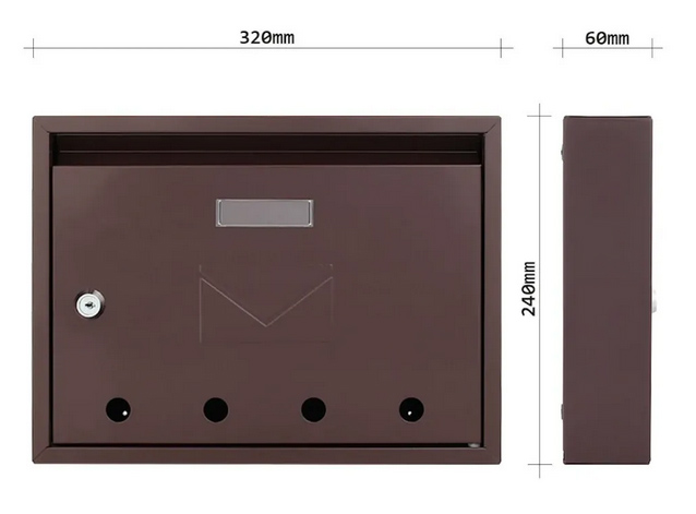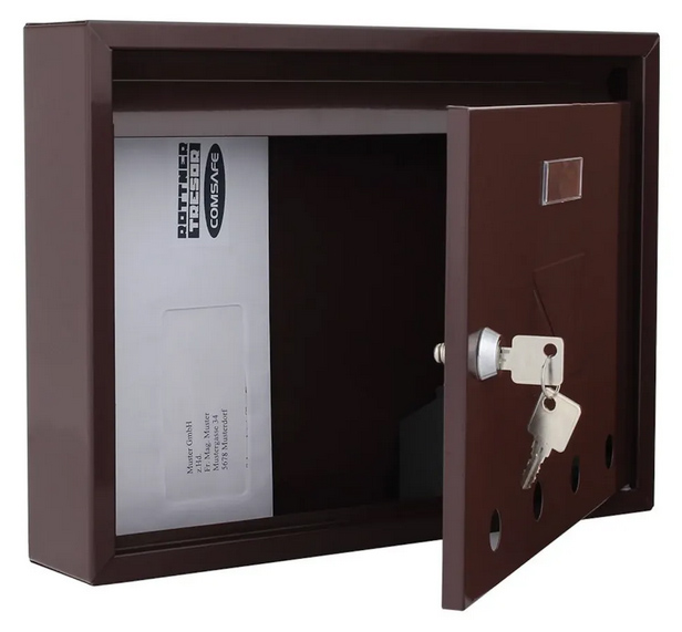 Hnědá poštovní schránka z modelové řady Imola nabízí prostor pro klasickou poštu a poštovní zásilky. Doručené je zajištěna klasickým cylindrickým zámkem, který je dodáván spolu s 2 klíči. Ocelové provedení je odolné proti povětrnostním vlivům a korozi. Na spodní straně jsou 4 otvory přes které můžete vidět, ať už vaše pošta dorazila.