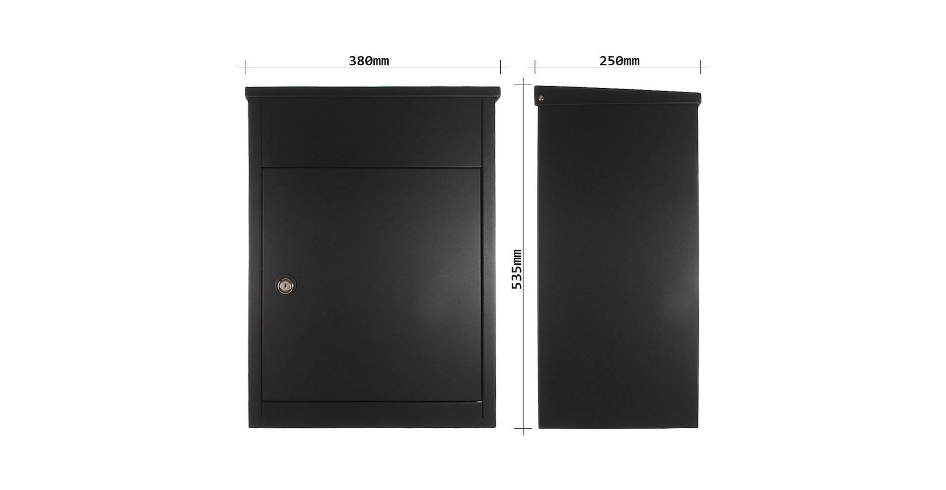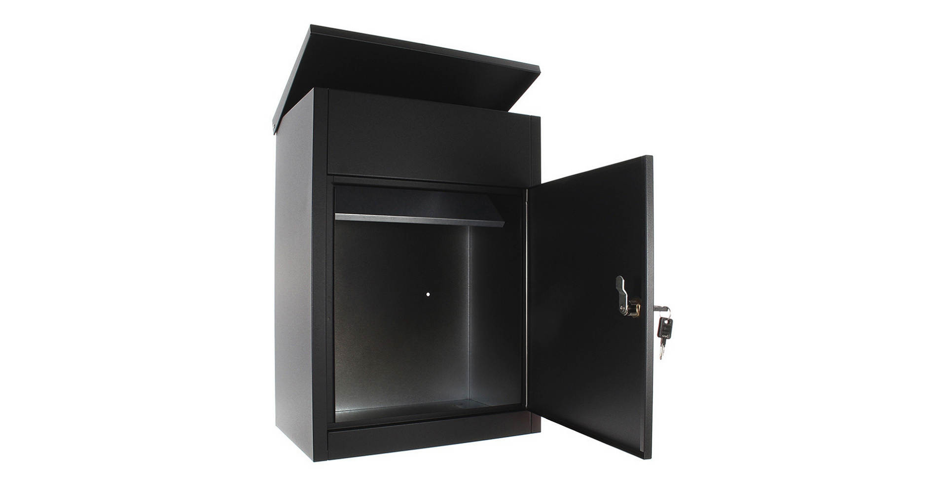 • Schránka je vybavena horním vhozem (320 x 195 mm) a předním výběrem.