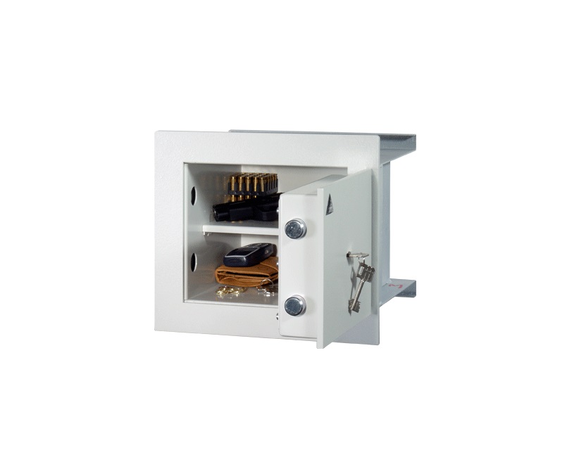 • Dvouplášťový stěnový trezor s ohnivzdorným lemem odolným proti slabému požáru (ohnivzdornost není certifikována).