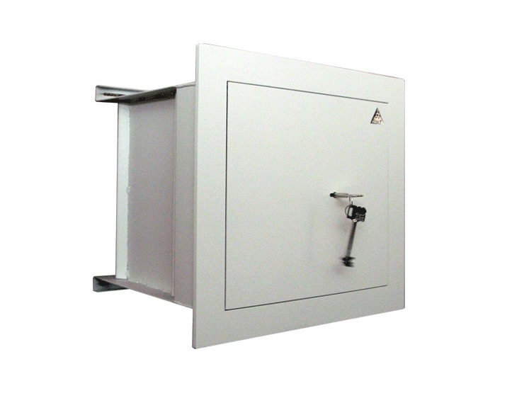 • Dvouplášťový stěnový trezor s ohnivzdorným lemem odolným proti slabému požáru (ohnivzdornost není certifikována).