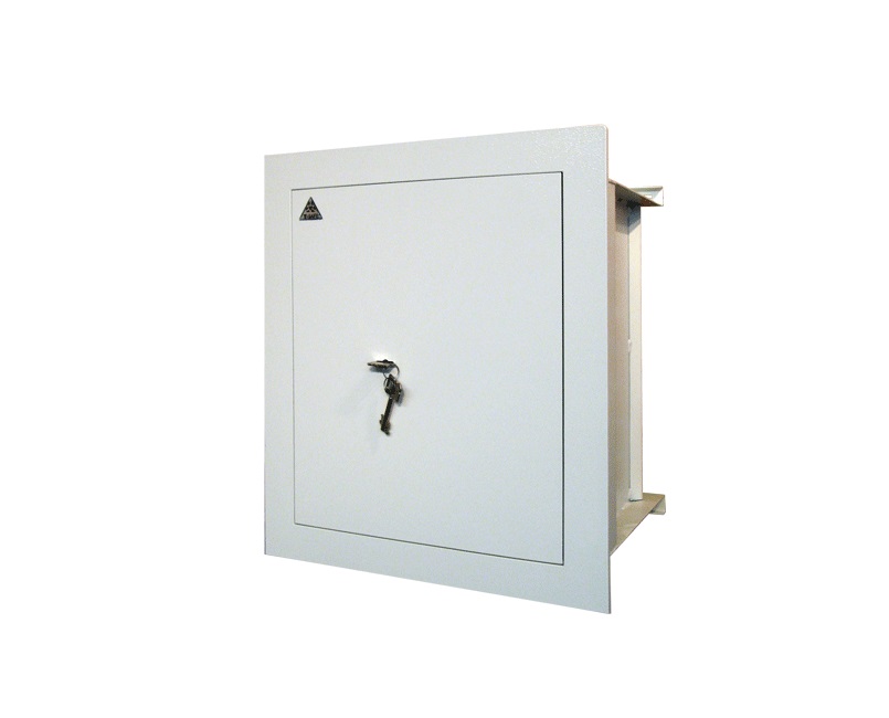 • Dvouplášťový stěnový trezor s ohnivzdorným lemem odolným proti slabému požáru (ohnivzdornost není certifikována).