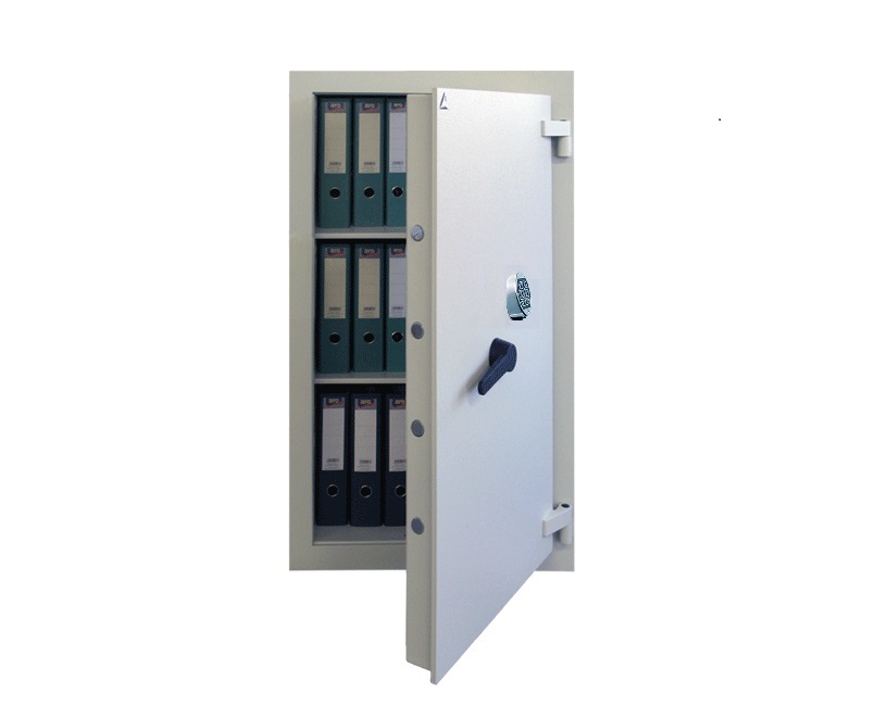 • Dvouplášťový stěnový trezor s ohnivzdorným lemem odolným proti slabému požáru (ohnivzdornost není certifikována).
